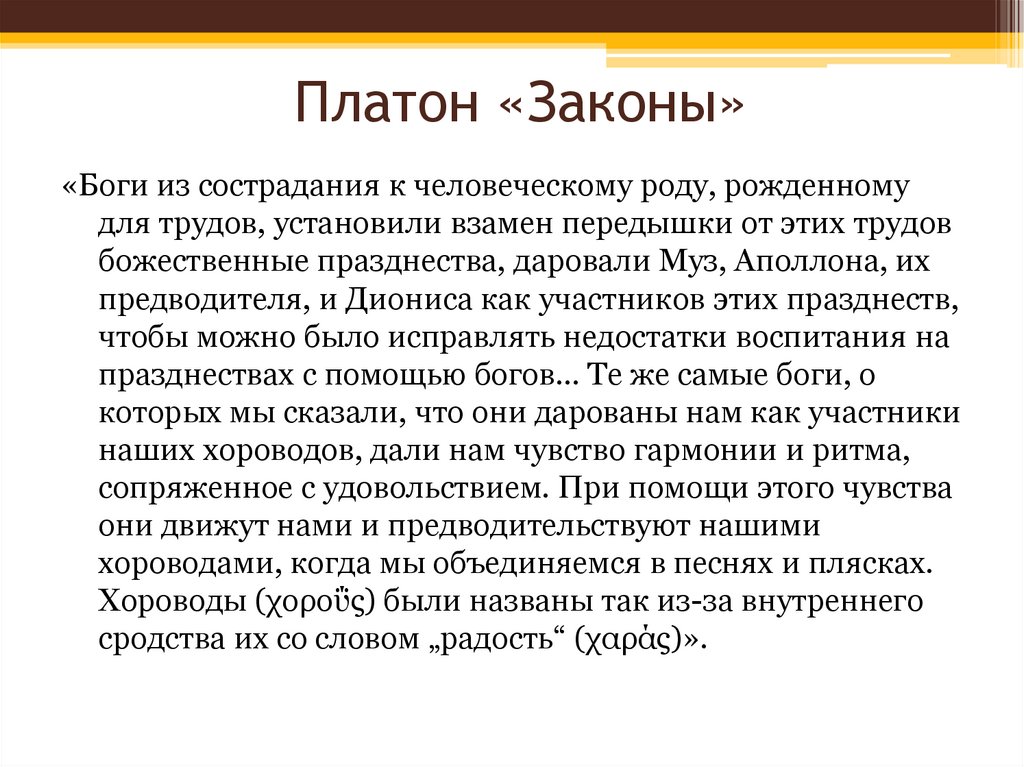 Платон «Законы»«Боги из сострадания к человеческому роду, рожденному