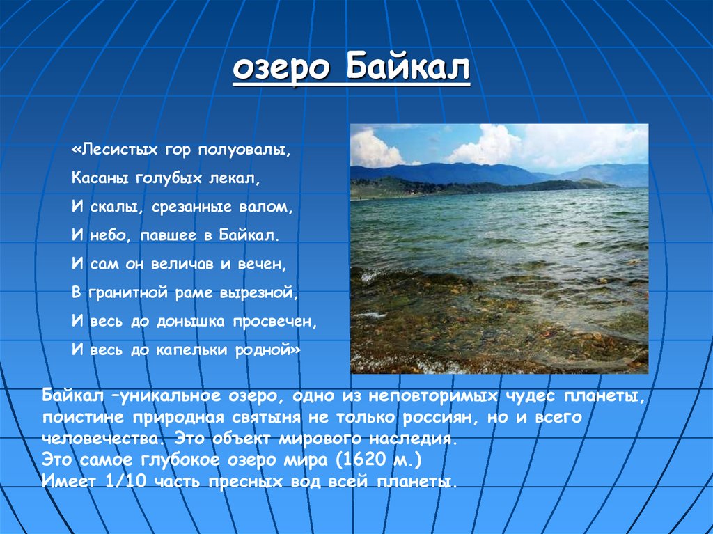 Байкал –уникальное озеро, одно из неповторимых чудес планеты,