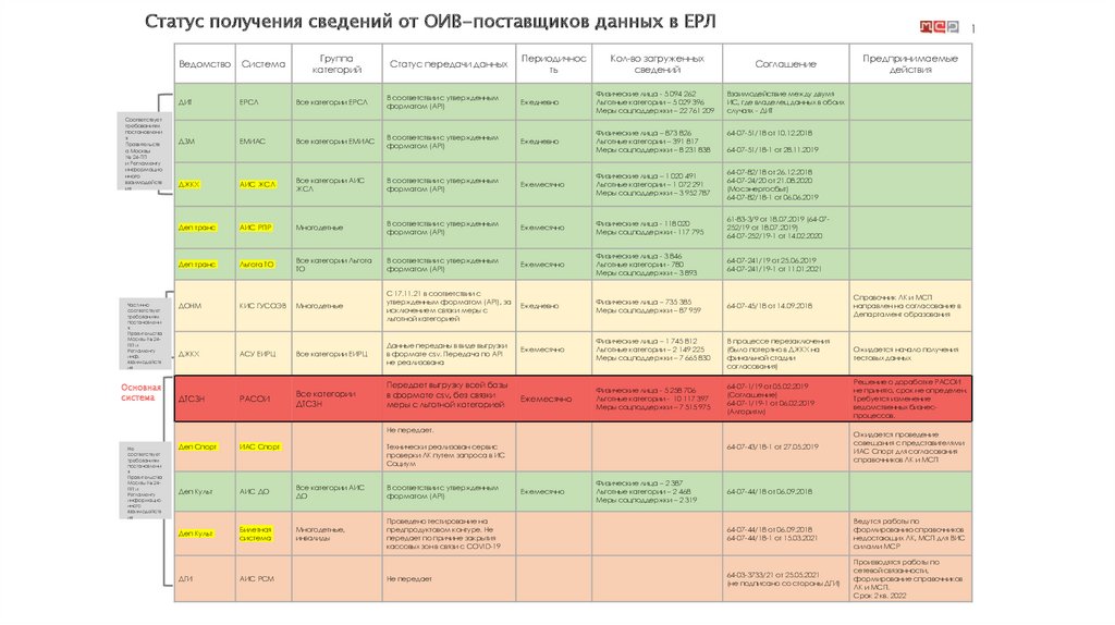 Статус получения сведений от ОИВ-поставщиков данных в ЕРЛ