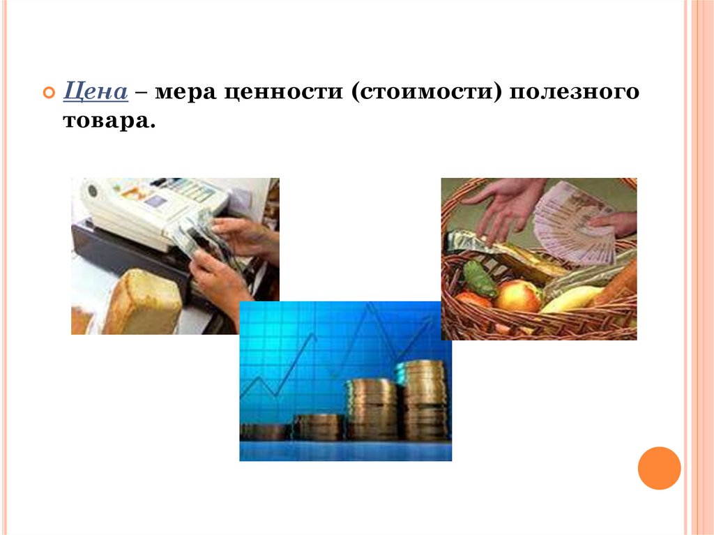 Цена – мера ценности (стоимости) полезноготовара.