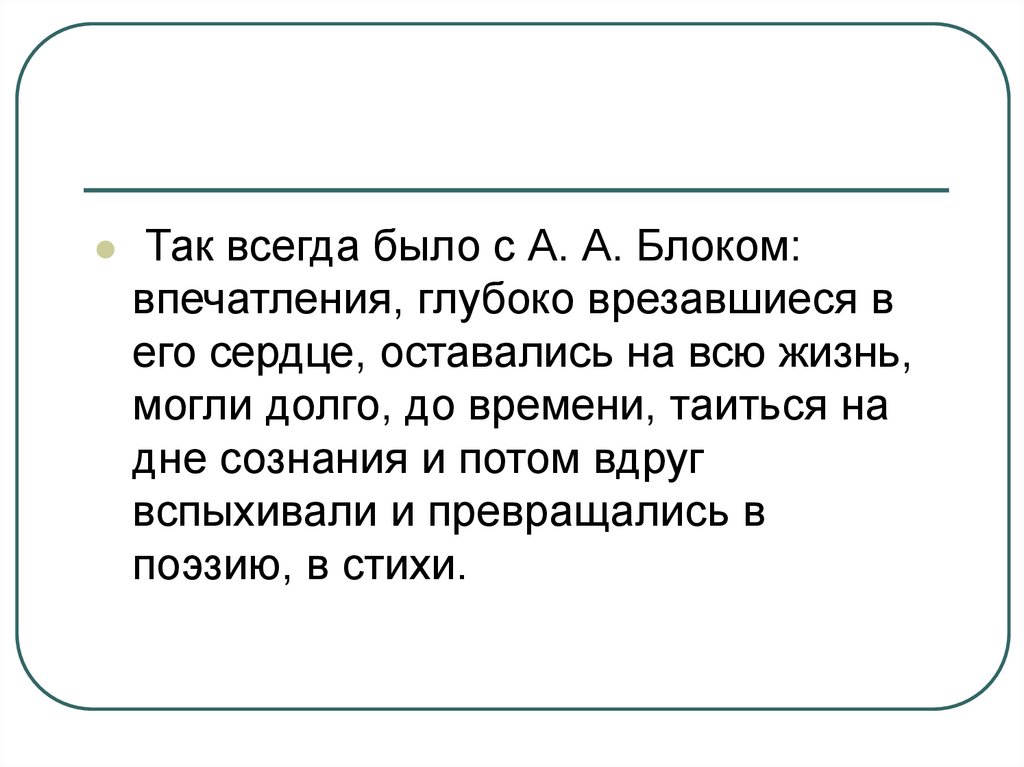 Так всегда было с А. А. Блоком:впечатления, глубоко врезавшиеся в