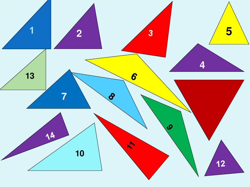 8. Может ли в треугольнике быть два прямых угла, тупых угла, острых?