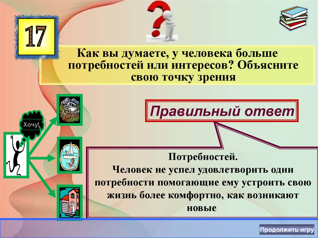 Как вы думаете, у человека большепотребностей или интересов? Объясните