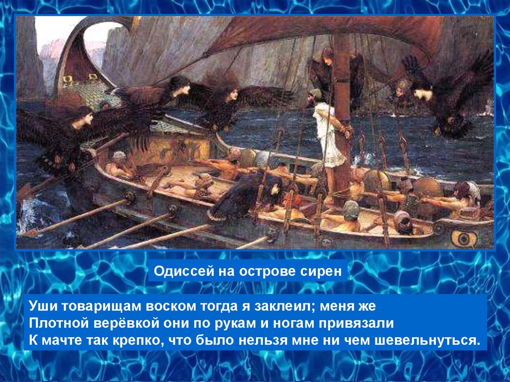 Одиссей на острове сиренУши товарищам воском тогда я заклеил; меня же