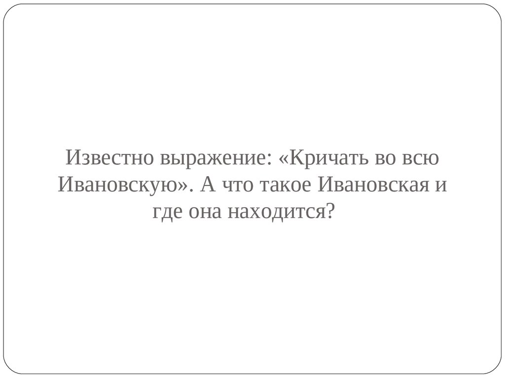 Известно выражение: «Кричать во всюИвановскую». А что такое Ивановская и