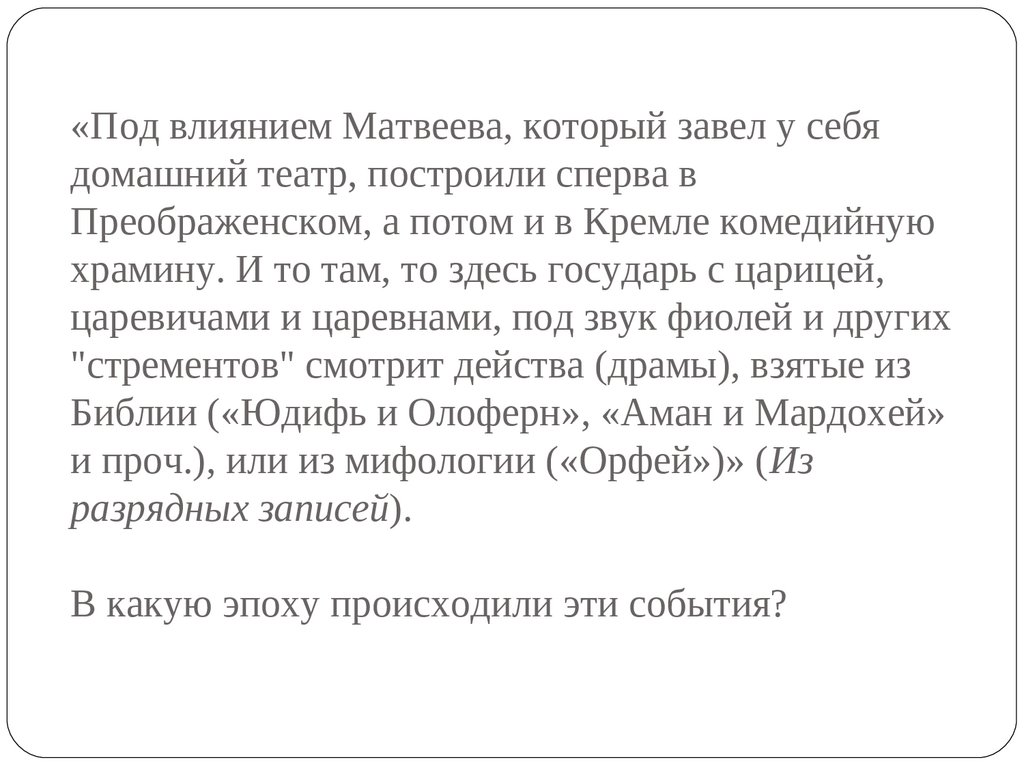 «Под влиянием Матвеева, который завел у себядомашний театр, построили сперва в