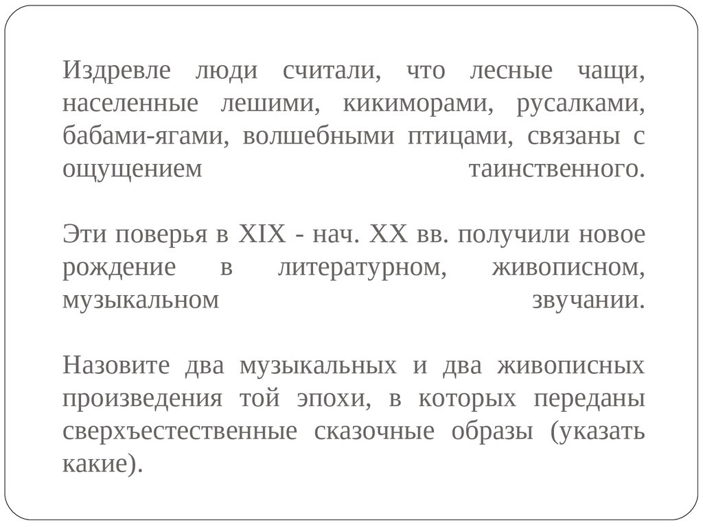 Издревле люди считали, что лесные чащи,населенные лешими, кикиморами, русалками,