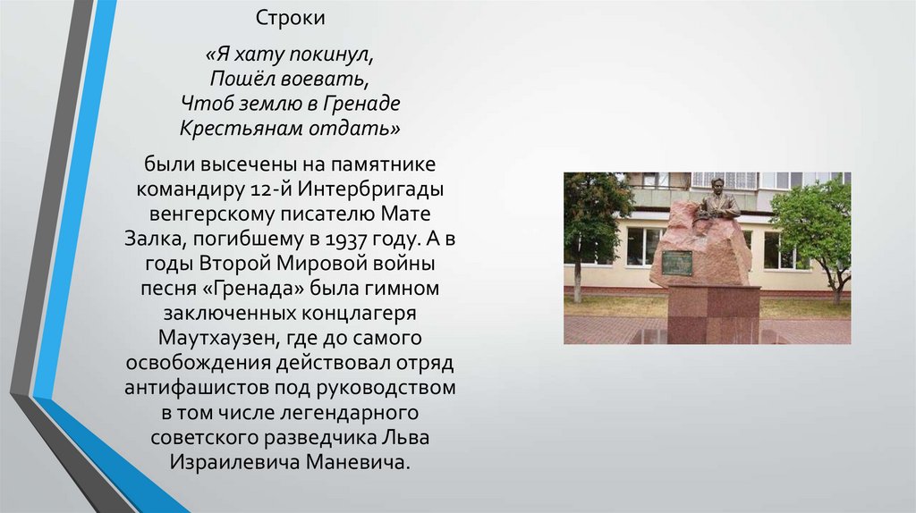 Касательно своего популярноготворения, «стихотворениямаршала» "Гренада", сам Михаил