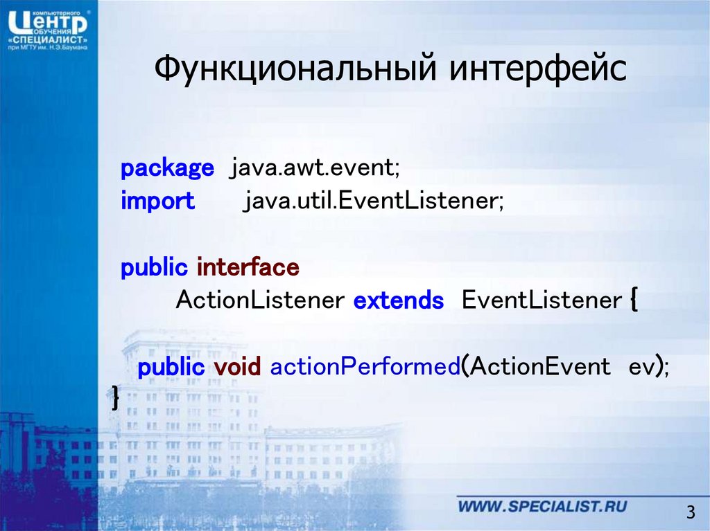 Функциональный интерфейсpackage java.awt.event;