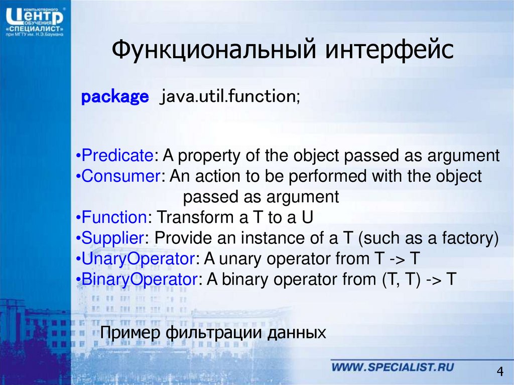 Функциональный интерфейсpackage java.util.function;