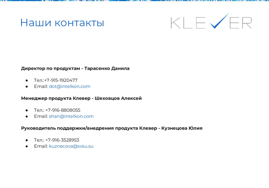 Руководитель поддержки/внедрения продукта Клевер - Кузнецова Юлия