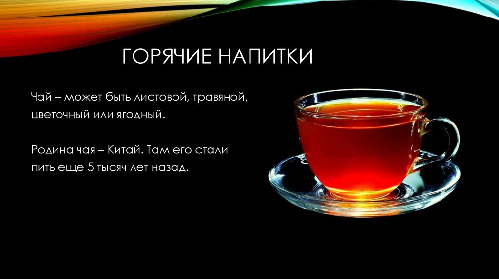 ГОРЯЧИЕ НАПИТКИЧай – может быть листовой, травяной,
