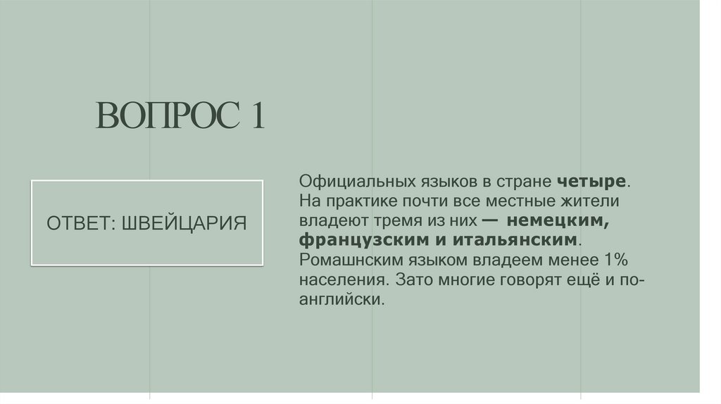 ВОПРОС 1ОТВЕТ: ШВЕЙЦАРИЯ