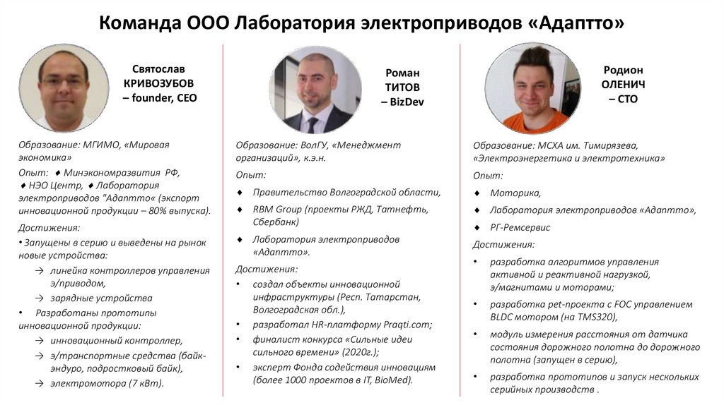 Команда ООО Лаборатория электроприводов «Адаптто»