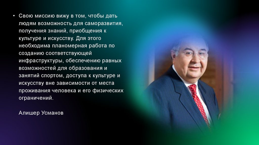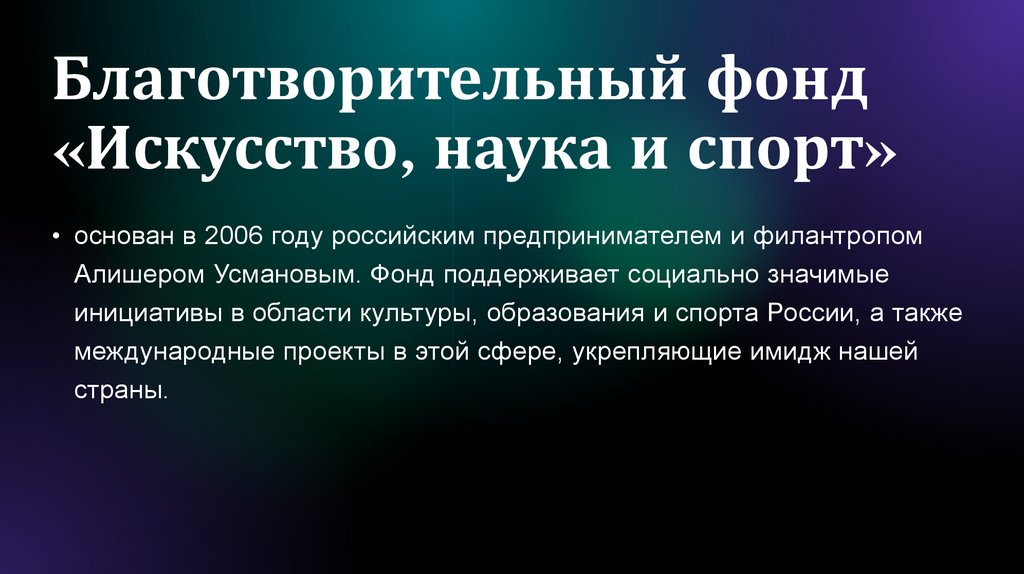 Алишером Усмановым. Фонд поддерживает социально значимые