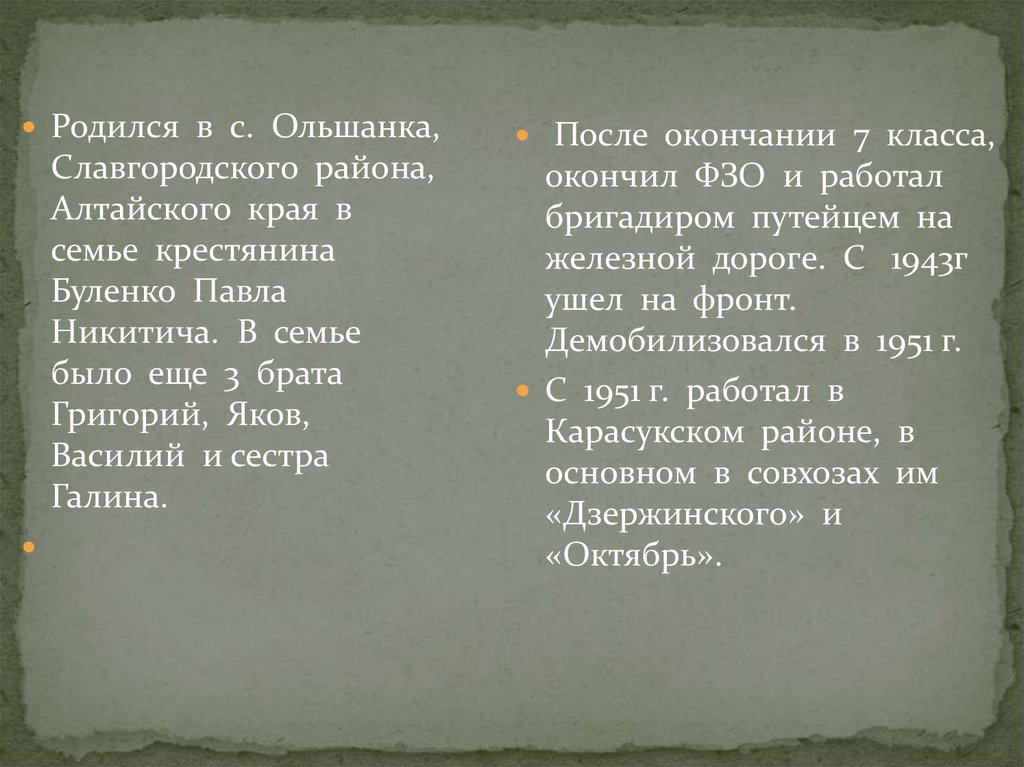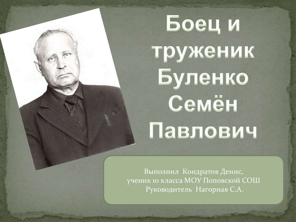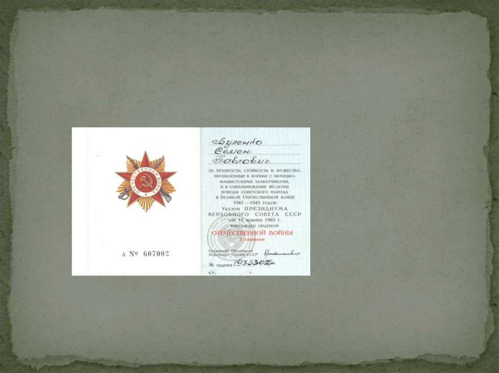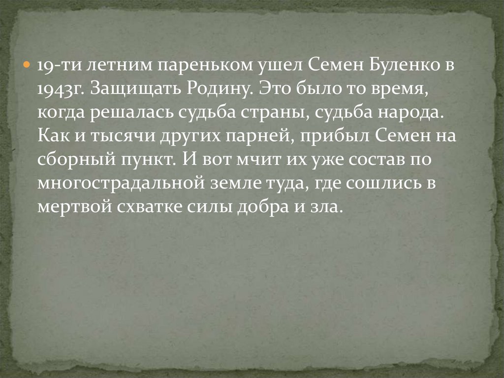 19-ти летним пареньком ушел Семен Буленко в1943г. Защищать Родину. Это было то время,