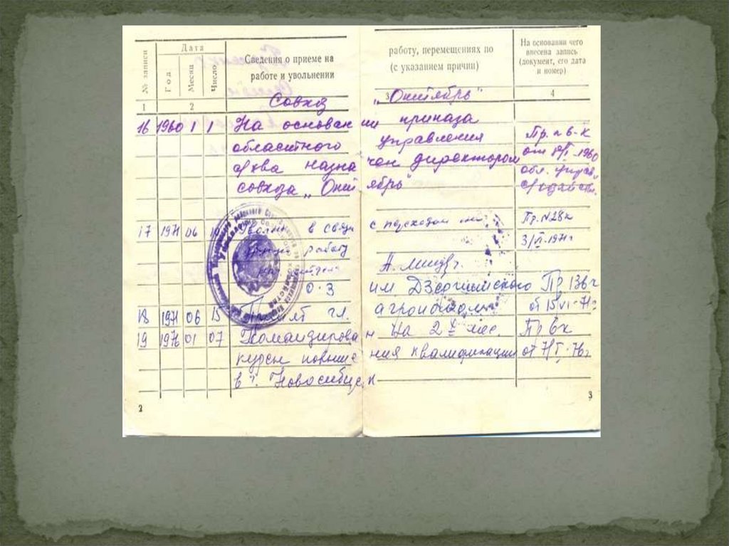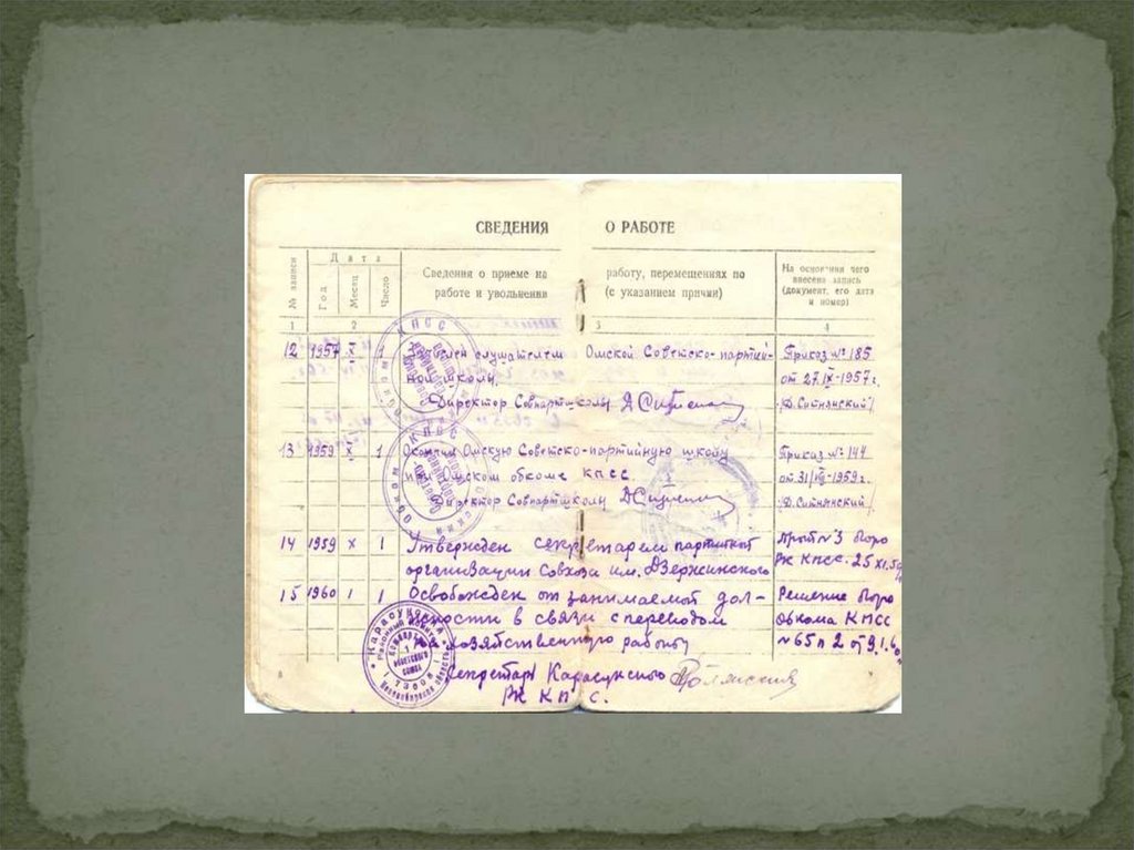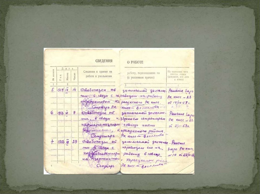1954 г - 1955 г Секретарь партийнойорганизации с-за им.
