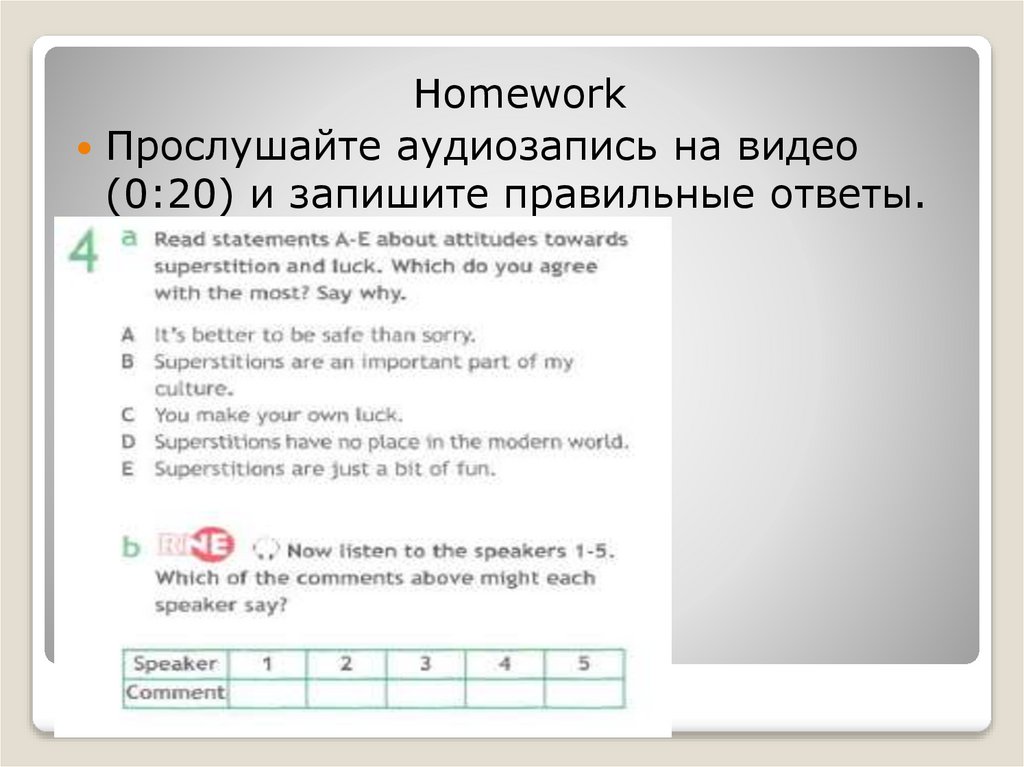 HomeworkПрослушайте аудиозапись на видео