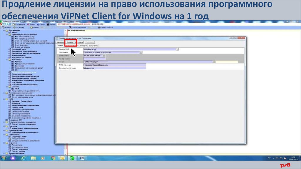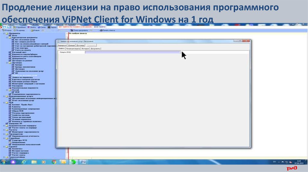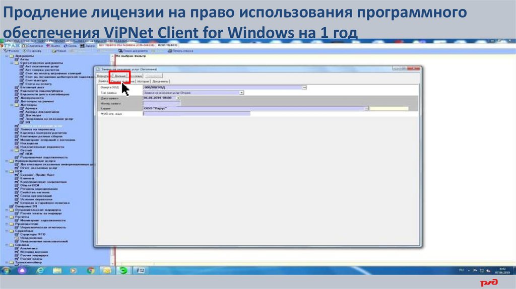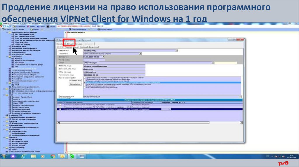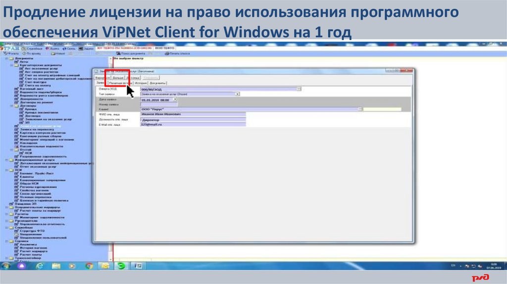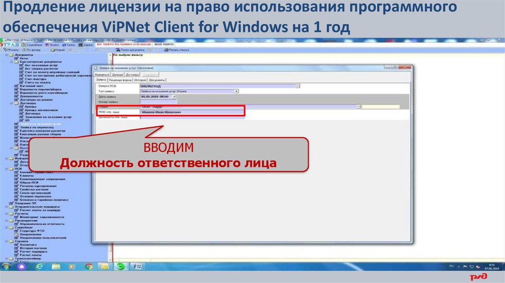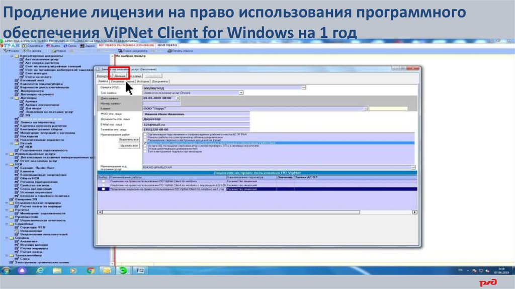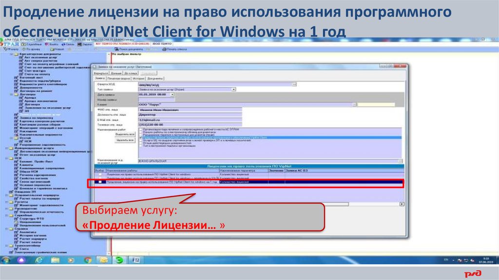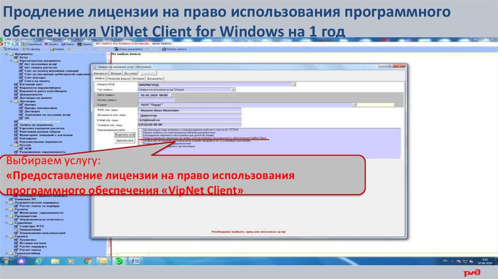 Видеоинструкция по оформлению заявки в АС ЭТРАН на оказание услуг по продлению лицензии на право использования ПО ViPNet Client
