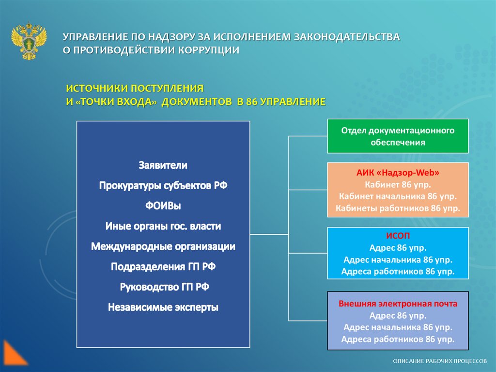 И «ТОЧКИ ВХОДА» ДОКУМЕНТОВ В 86 УПРАВЛЕНИЕ