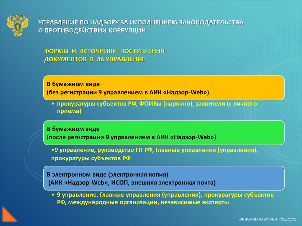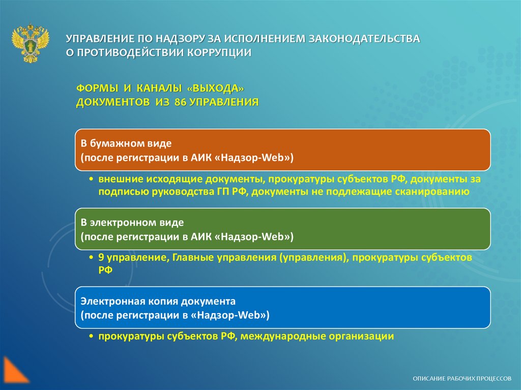 • внешние исходящие документы, прокуратуры субъектов РФ, документы за