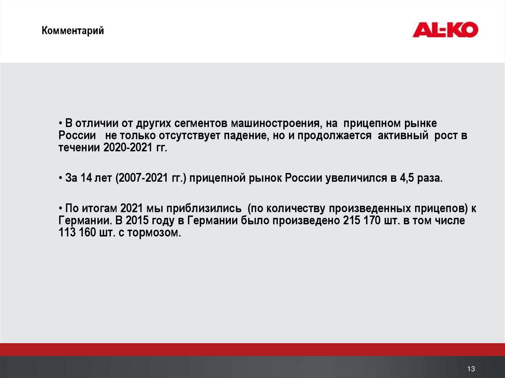 Комментарий• В отличии от других сегментов машиностроения, на прицепном рынке