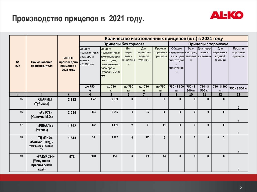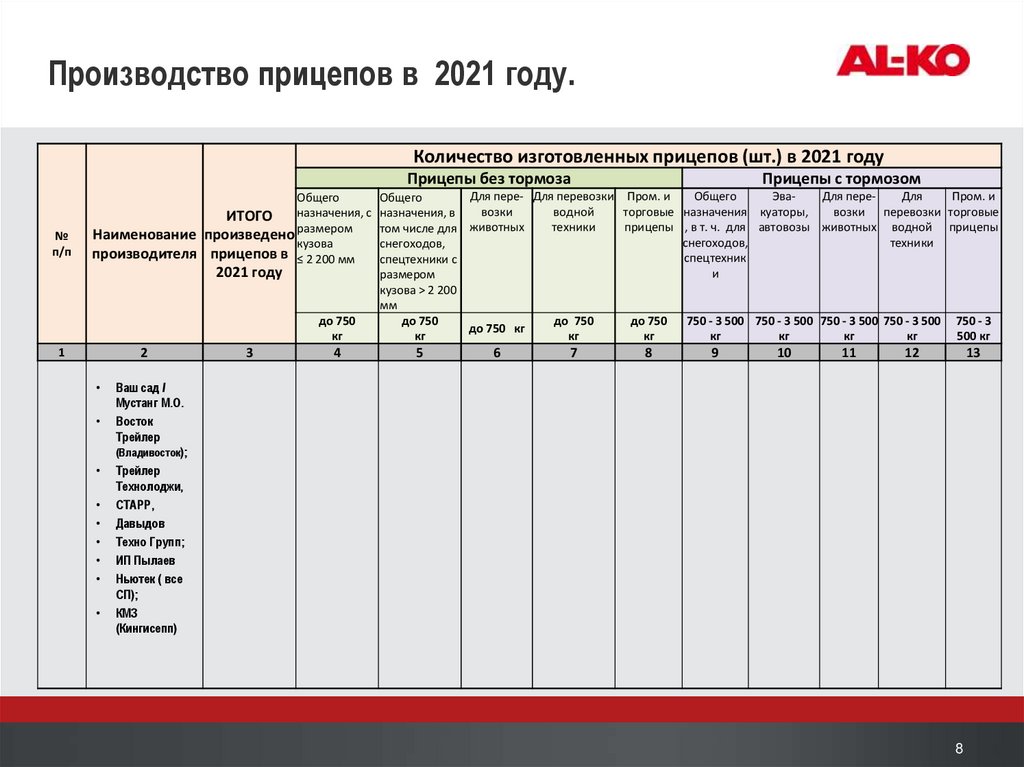 • По итогам 2021 мы приблизились (по количеству произведенных прицепов) к