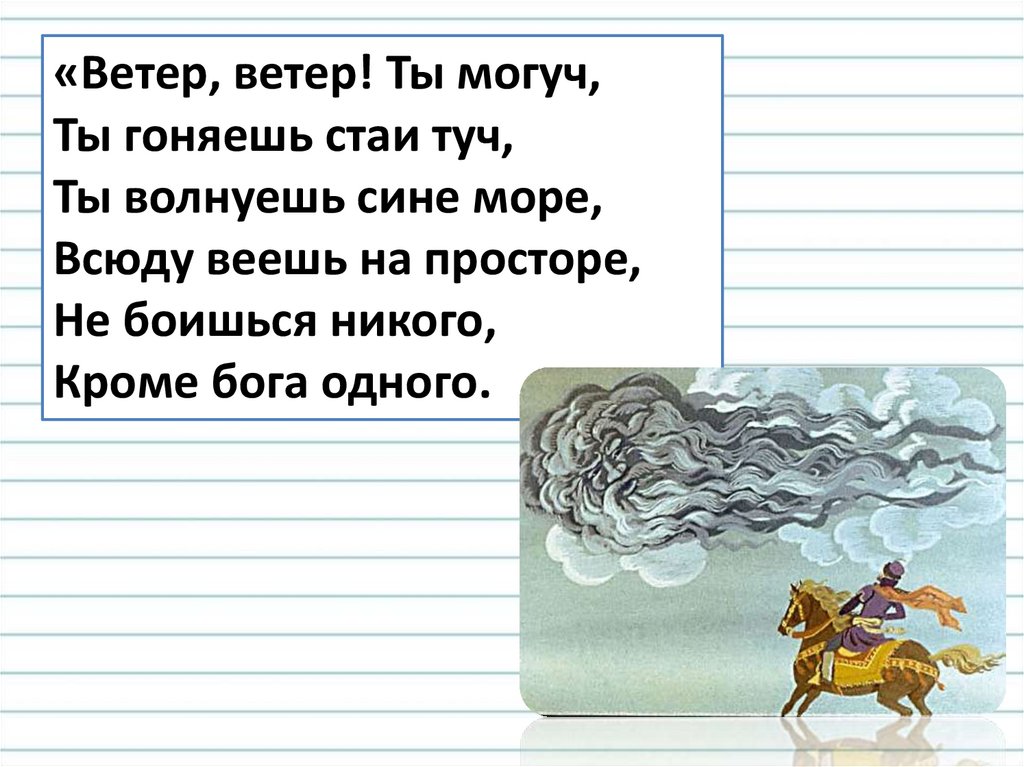 «Ветер, ветер! Ты могуч,Ты гоняешь стаи туч,