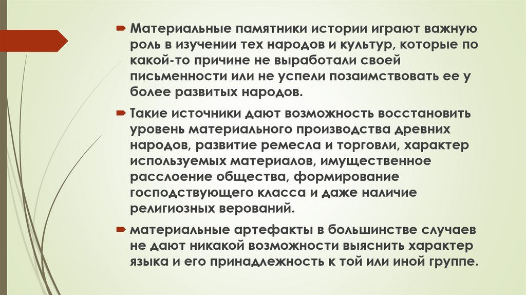 Материальные памятники истории играют важнуюроль в изучении тех народов и культур, которые по