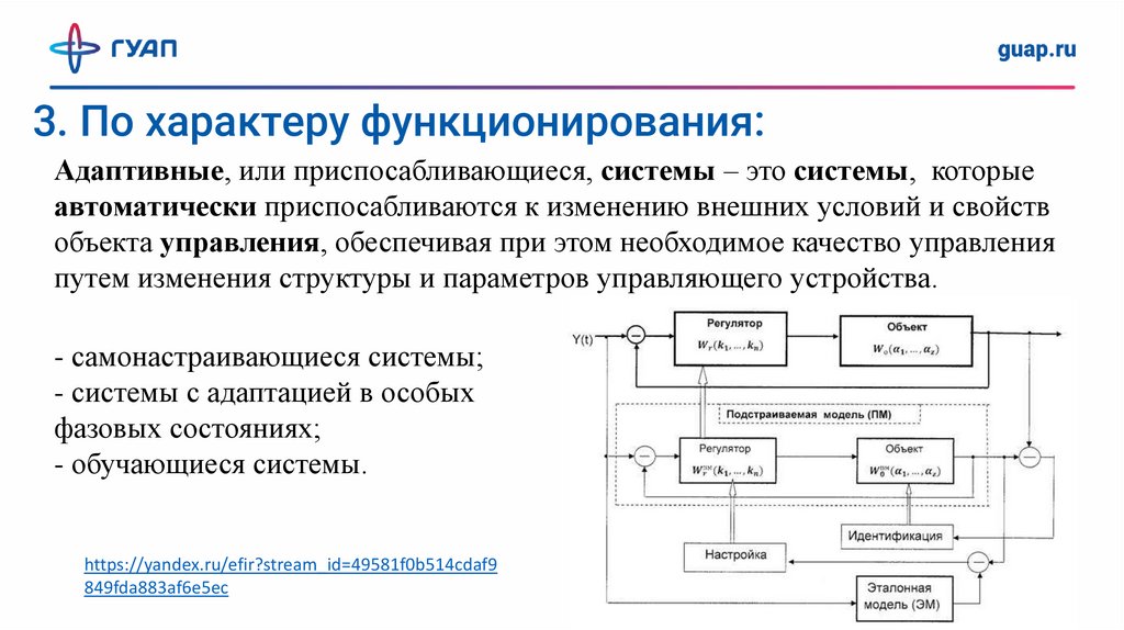3. По характеру функционирования:Адаптивные, или приспосабливающиеся, системы – это системы, которые
