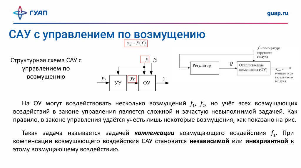 компенсации возмущающего воздействия САУ становится независимой или инвариантной к