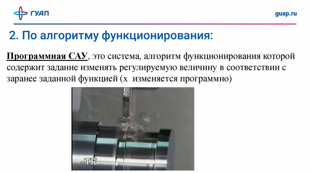 2. По алгоритму функционирования:Программная САУ, это система, алгоритм функционирования которой