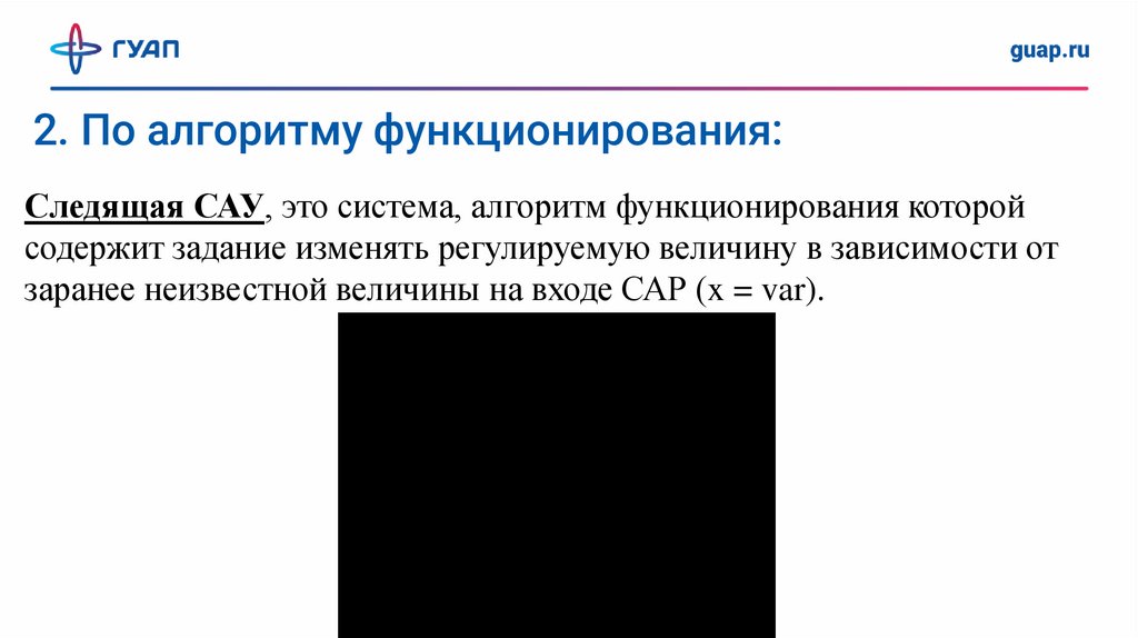 2. По алгоритму функционирования:Следящая САУ, это система, алгоритм функционирования которой