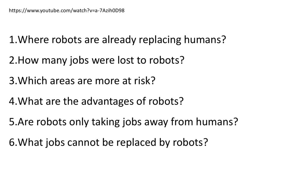 https://www.youtube.com/watch?v=a-7Azih0D981.Where robots are already replacing humans?