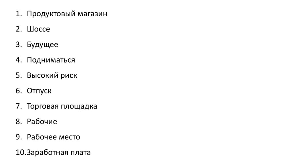 1. Продуктовый магазин2. Шоссе