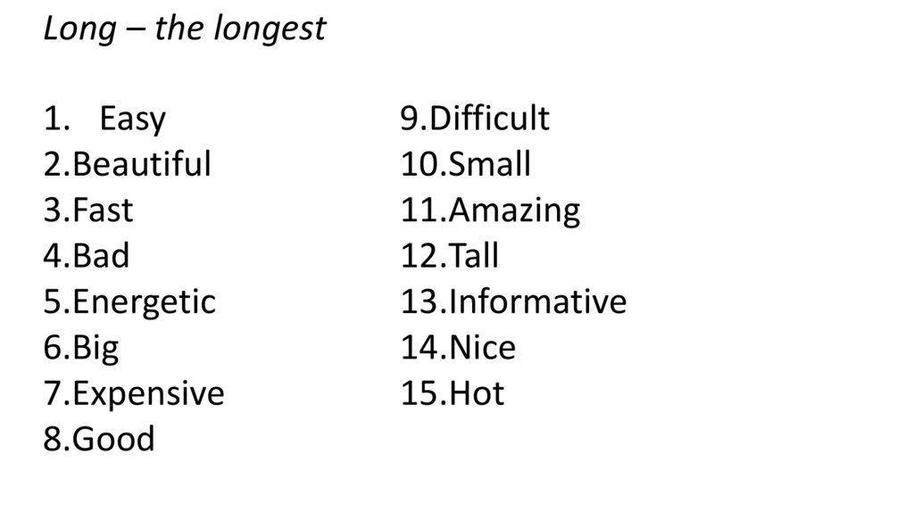 Long – the longest1. Easy