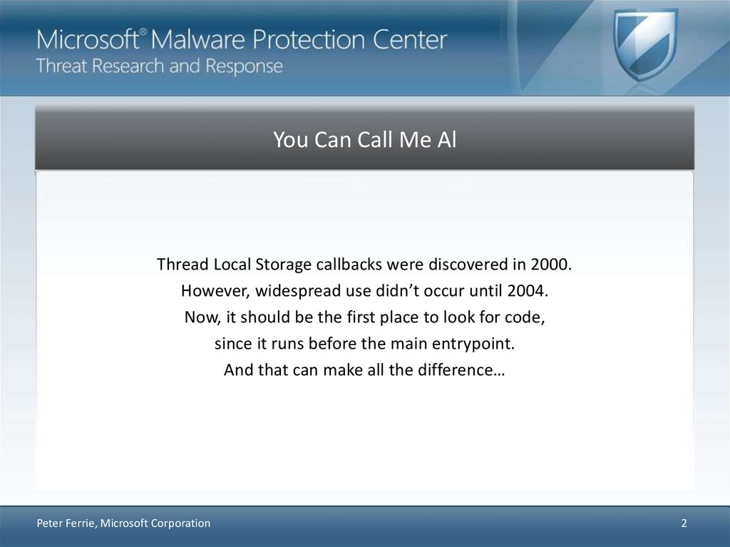 The One and OnlyPeter Ferrie, Microsoft Corporation