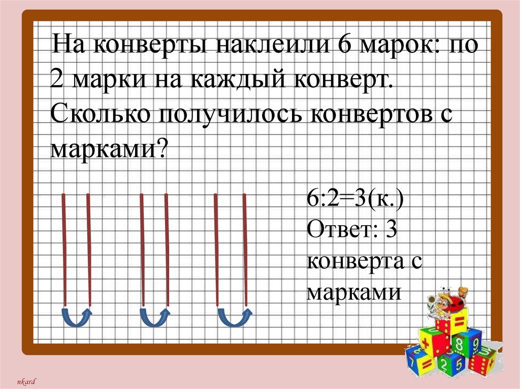 На конверты наклеили 6 марок: по2 марки на каждый конверт.
