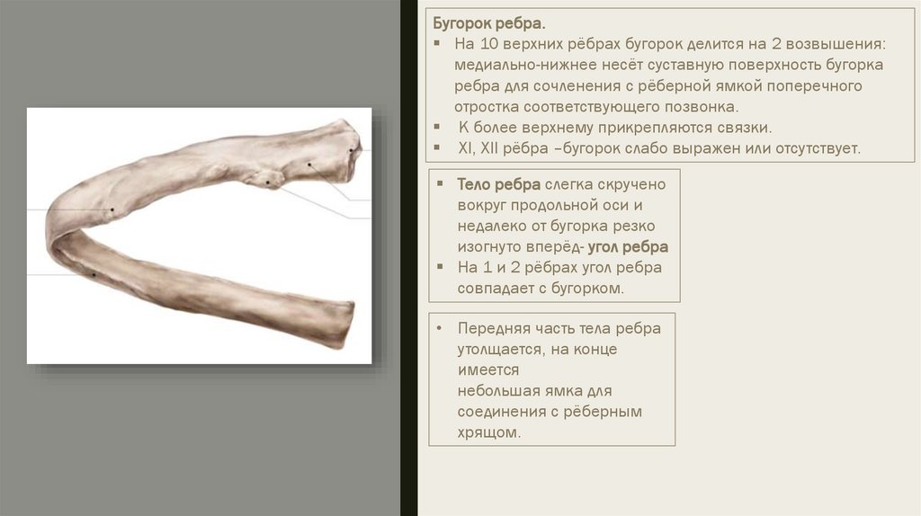 Бугорок ребра.На 10 верхних рёбрах бугорок делится на 2 возвышения: