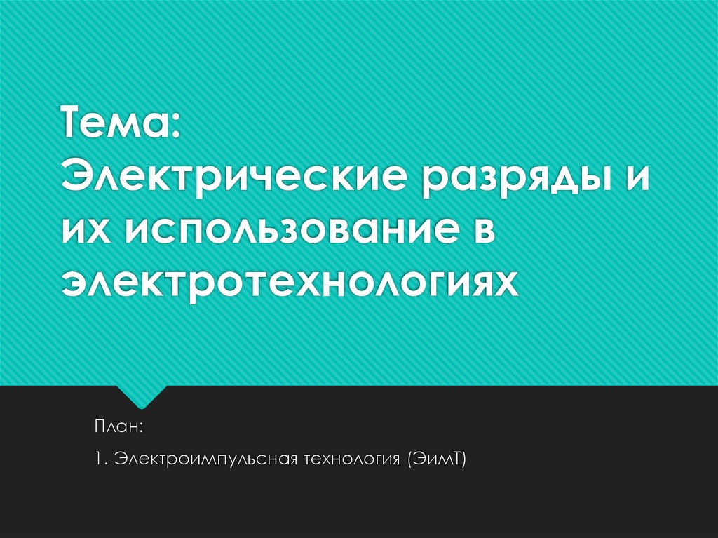 1. Электроимпульсная технология (ЭимТ)Процессы ЭимТ характеризуются прерывистым подводом электроэнергии с