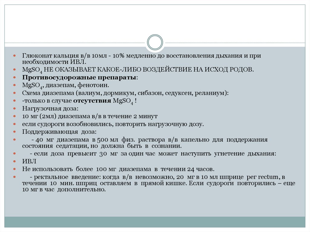 Не использовать более 100 мг диазепама в течении 24 часов.