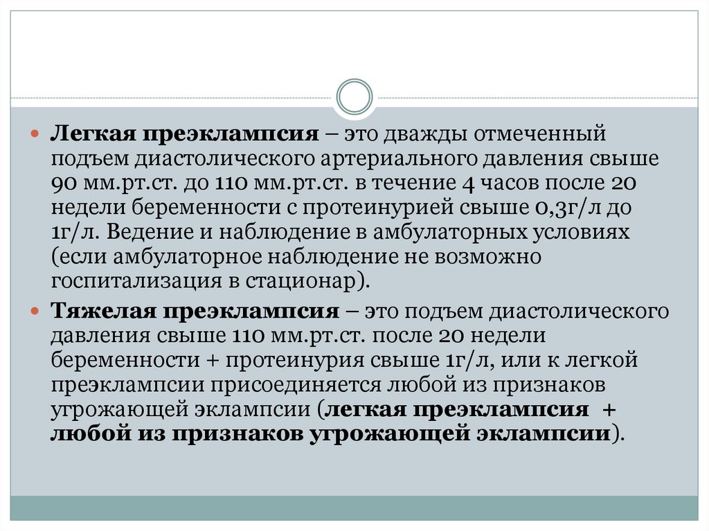 Легкая преэклампсия – это дважды отмеченныйподъем диастолического артериального давления свыше