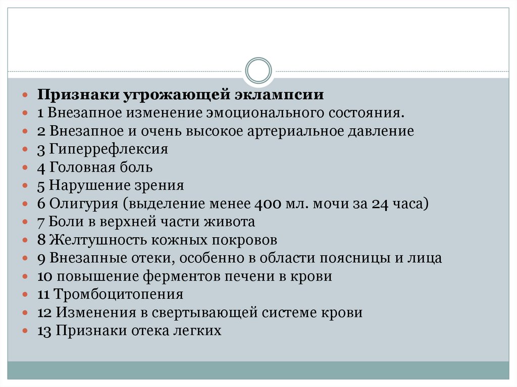 Признаки угрожающей эклампсии1 Внезапное изменение эмоционального состояния.