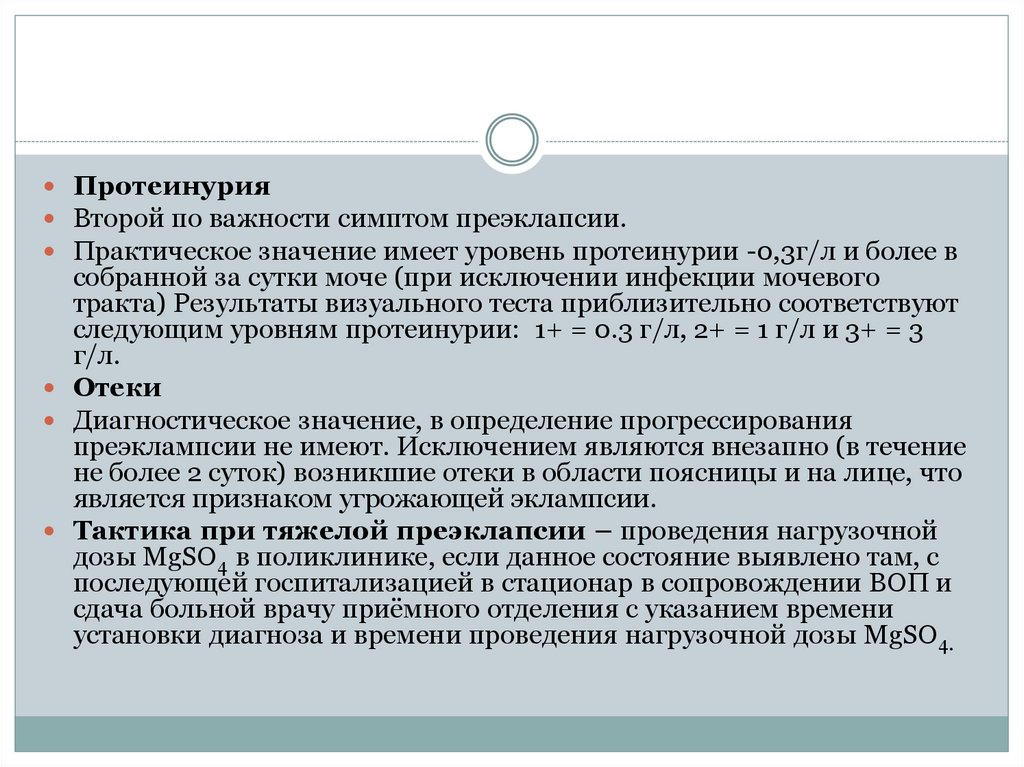 Практическое значение имеет уровень протеинурии -0,3г/л и более в