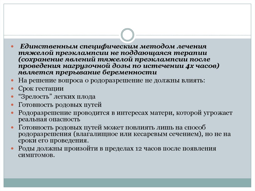 Единственным специфическим методом лечениятяжелой преэклампсии не поддающаяся терапии