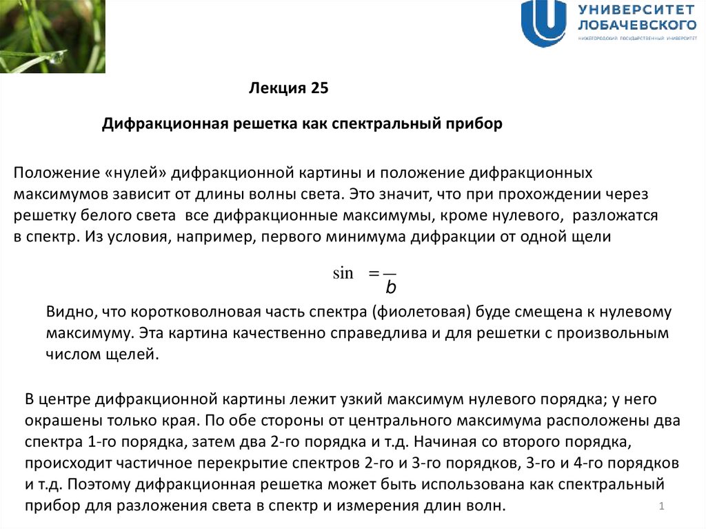 Лекция 25Дифракционная решетка как спектральный прибор