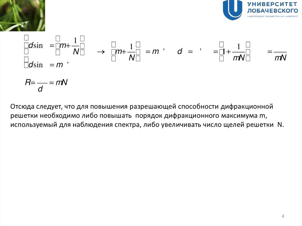 используемый для наблюдения спектра, либо увеличивать число щелей решетки N.