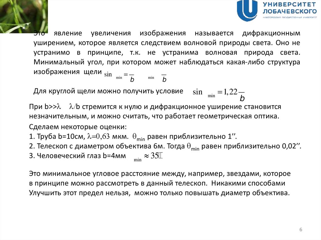 2. Телескоп с диаметром объектива 6м. Тогда qmin равен приблизительно 0,02’’.