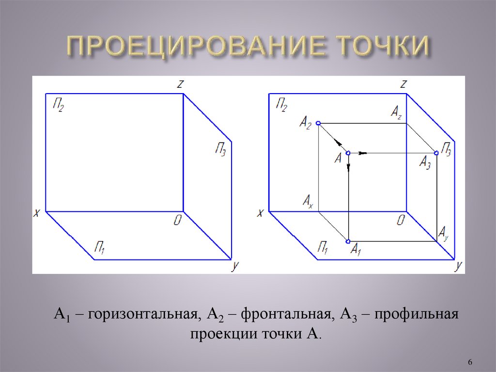 А1 – горизонтальная, А2 – фронтальная, А3 – профильнаяпроекции точки А.