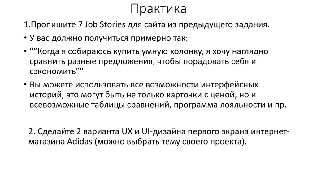 Практика1.Пропишите 7 Job Stories для сайта из предыдущего задания.